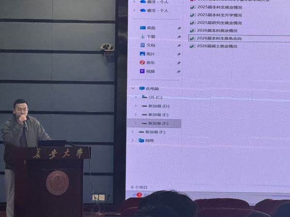 会上,左意围绕学风考纪开展专题教育,结合真实违纪典型案例,深入阐释诚信考试对个人成长成才、涵养优良学风的重要意义。他强调,全体同学要时刻保持清醒认知,坚守考试诚信纪律防线,自觉维护公平公正的考试秩序。随后,左意聚焦校园安全,从网络安全、消防安全、人身安全、食品安全四个方面进行宣讲,结合身边真实事例,引导同学们牢固树立敬畏生命、珍爱生命意识,他提醒同学们面对困难与压力时,要及时调整心态,主动向老师、同学及家人寻求帮助,以积极健康的状态投入学习生活。